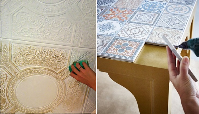 Обновите керамическую плитку с помощью аккуратной покраски. Для этого понадобиться специальная водоотталкивающая краска, которой можно покрыть всю кладку целиком или нанести простой узор под трафарет.