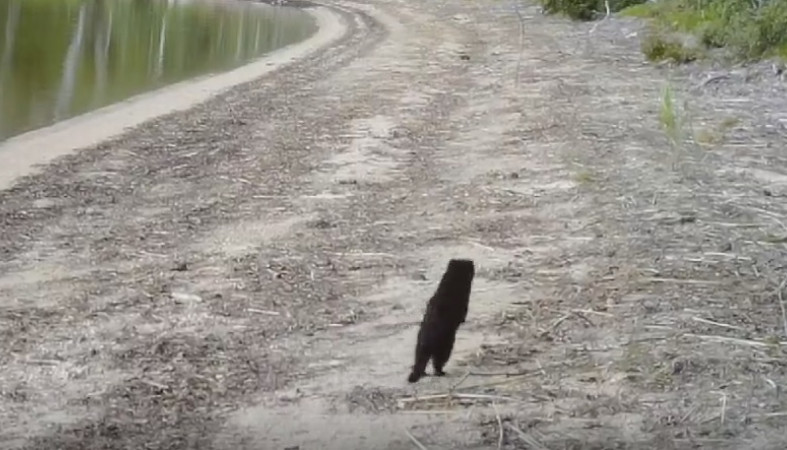 «Любопытство присуще не только людям. В очередной раз кто-то проявил внимание к видеоловушке, установленной на берегу заповедного озера. Статичный кадр заходил ходуном. Кто там — медведь, олень? Нет. Вскоре герой появляется в кадре. Это американская норка, представитель семейства куньих», — говорится в описании к ролику.
