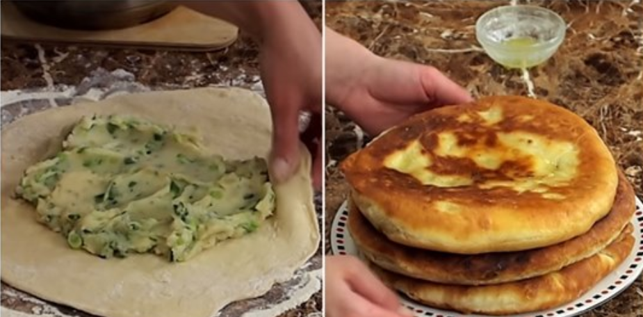 Если по какой-то причине не хочется идти за хлебом, с успехом можно заметить его аппетитными лепешками с начинкой. Времени это много не займет, а результат точно порадует. Плюсом является и то, что набор продуктов доступен, а само приготовление не занимает много времени. Начинка в таких лепешках может быть любой. В нашем случае она картофельная.