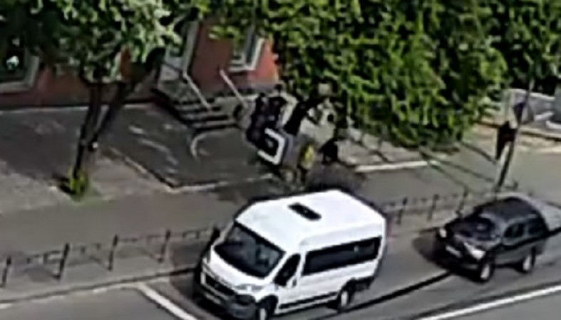 На кадрах видно, как после столкновения горожанка осталась лежать на земле. К ней на помощь поспешили прохожие.
