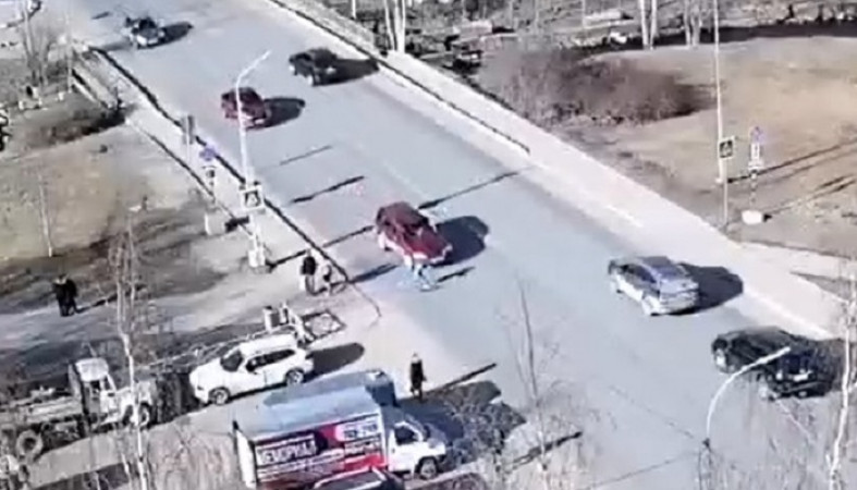 На кадрах видно, как юный пешеход на самокате начал пересекать дорогу по пешеходному переходу. Внезапно его сбил автомобиль, ехавший в сторону проспекта Ленина.