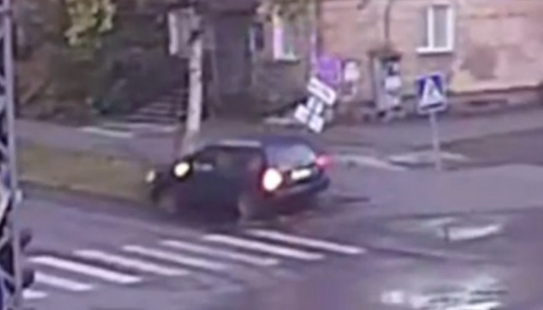 Сегодня утром в центре Петрозаводска автомобиль вылетел с дороги и снес дорожный знак. Инцидент произошел в 6:47 на пересечении улиц Антикайнена и Максима Горького и попал в объектив камер наблюдения компаний Sampo.ru и CityLink.