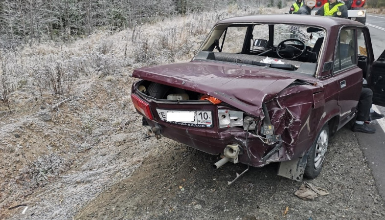 Сигнал о ДТП поступил к пряжинским спасателям 26 октября в 10:04. На 61 километре автодороги К-8610 автомобиль ВАЗ съехал в кювет.