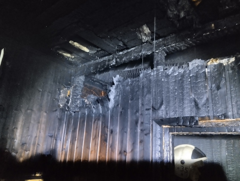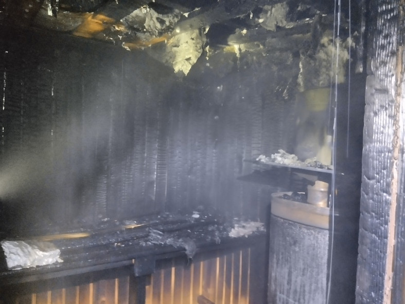 Судя по фото, огонь повредил помещение парной, перекрытия и крышу. (фото vk.com)