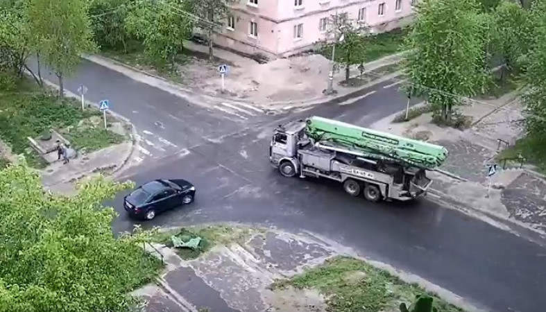 Сегодня в поселке Надвоицы произошло ДТП с участием большегруза. Инцидент попал в объектив камеры наблюдения компании CityLink.