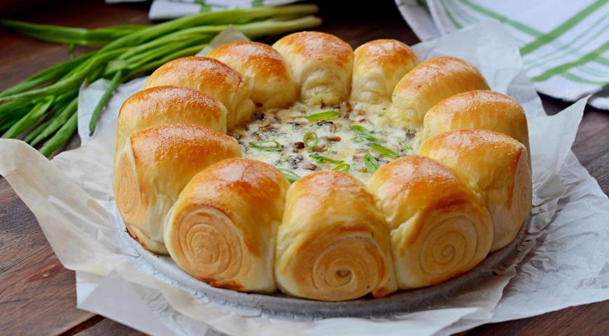 Отрываем мягкую, нежную, пушистую булочку, окунаем ее в вкуснейшую сырно-грибную начинку и наслаждаемся. Это безумно вкусно!