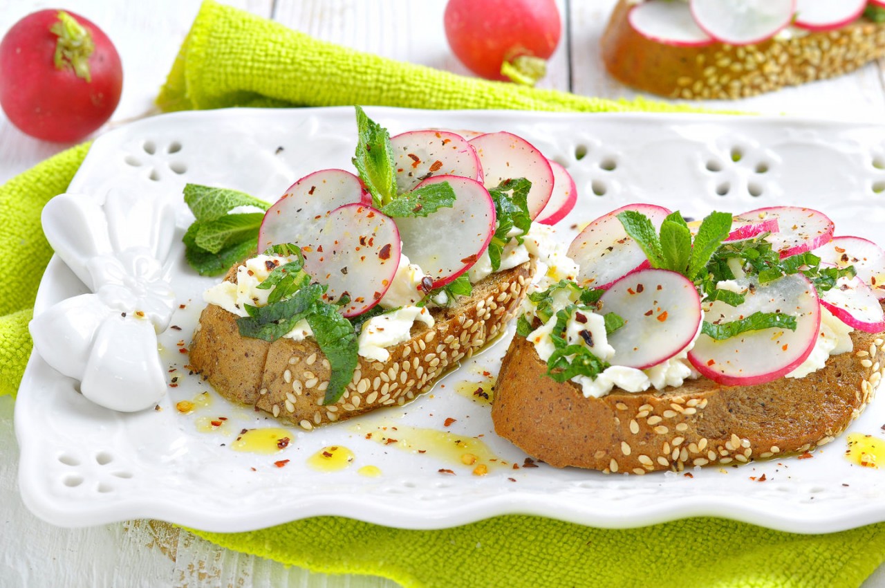 Бутерброды «Весенние цветы» понравятся острым хрустом редиса со сливочно-укропным кремом и кусочками каперсов. Если вам нравится укроп и легкая пикантность каперсов, приготовьте больше намазки, вам захочется ее дегустировать даже после ужина. В качестве основы используйте цельнозерновой, беззерновой или любой другой хлеб по вкусу. Также подойдут соленые бутербродные крекеры.