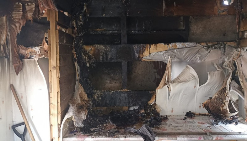В результате ЧП была повреждена обшивка дивана, расположенного в помещении. // Фото ОПС по Пряжинскому району