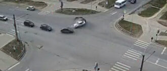 Авария с участием двух легковых автомобилей попала в объектив камеры наблюдения 27 апреля в