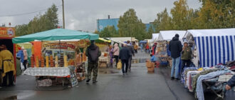 Торговые ряды ждут покупателей в районе пересечения Инженерной улицы и Октябрьского проспекта В Петрозаводске