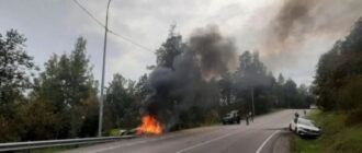 После аварии один из автомобилей вспыхнул, пострадала женщина Авария на 238 километре автодороги «Сортавала»
