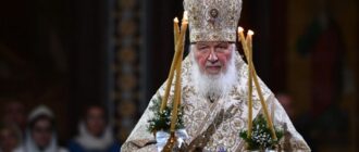 Патриарх Московский и всея Руси Кирилл во время выступления с проповедью в Успенском соборе