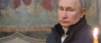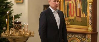Президент РФ Владимир Путин встретил Рождество в Благовещенском соборе Кремля в одиночестве. Кроме президента