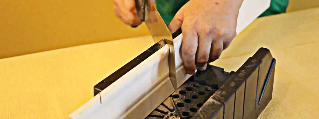 Если комната со стандартными углами 90°, то отпилы нужно делать под углом 45°. С помощью стусла это делается очень быстро и точно.