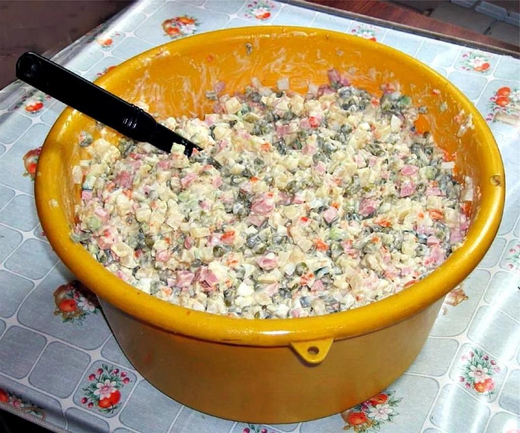 И самый популярный вопрос задам — оливье готовили тазиками или вёдрами? Съели или осталось? Много?