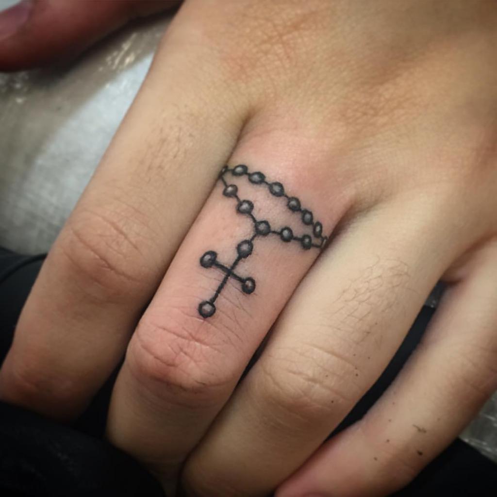 Этот вариант татуировки рассматривается и как христианский религиозный символ. Он подразумевает, что его владелец — богобоязненный человек. Любовь всевышнего и благословение всегда с ним. Если человек верит в Бога и всегда пытается сделать других счастливыми, никогда не совершает грехов, то такая татуировка на пальце может означать унаследованный сильный дух.