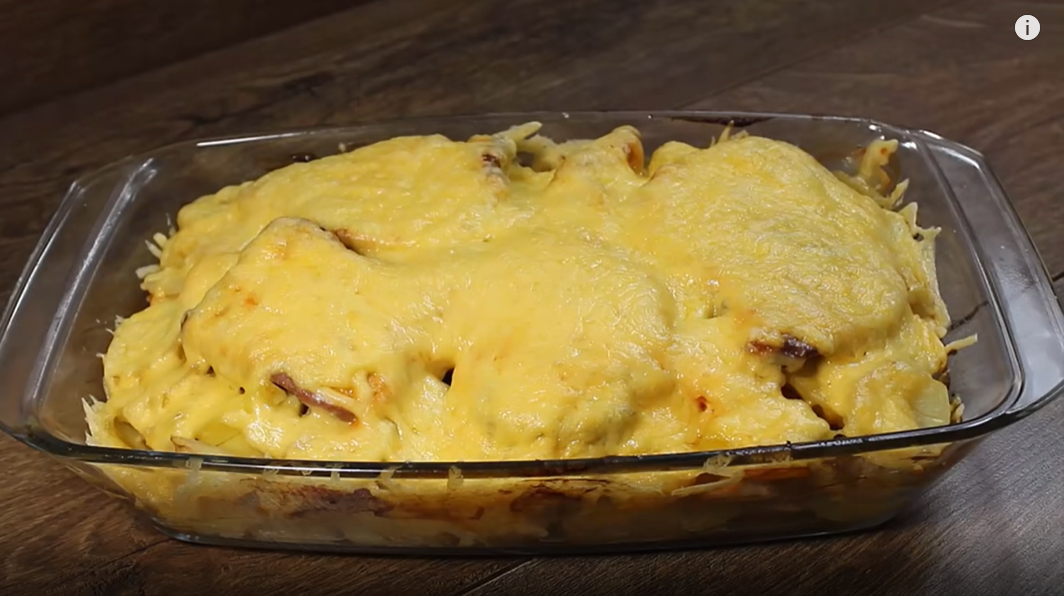 8. Запекайте при 180 градусах 50-58 минут. За 3-4 минуты до готовности посыпьте ароматное угощение сыром, чтобы тот превратился в золотистую корочку.