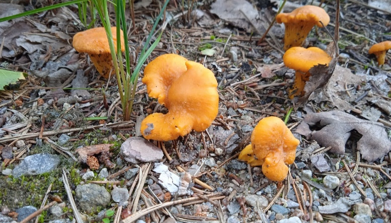 Первые урожаи лисичек уже отправлены на сковородку. Пока грибы растут только вдоль дорог.