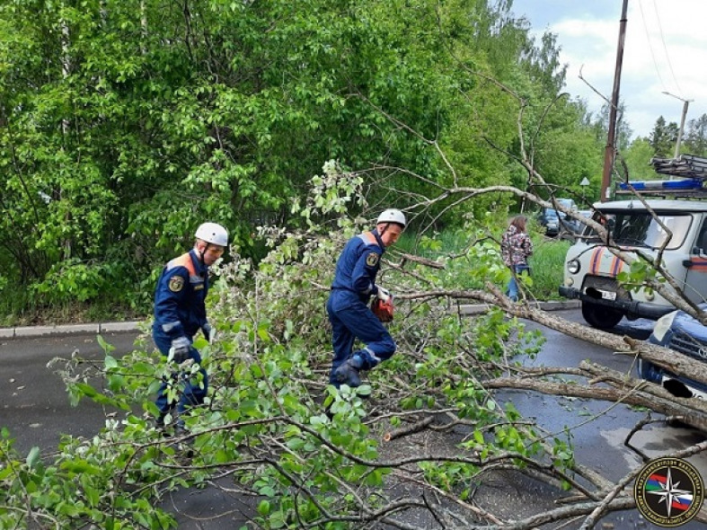 Спасатели освобождали проезжую часть от упавшего дерева на Кукковке