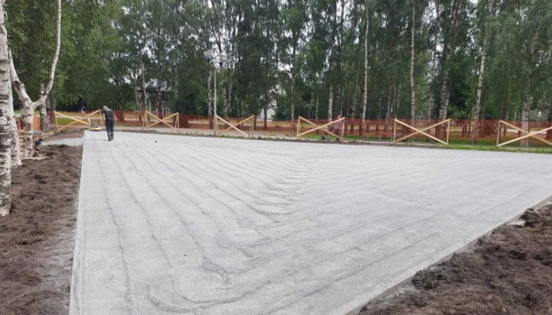 Работы идут в рамках программы о комфортной городской среде, подрядчик уже завершает обустройство основания.