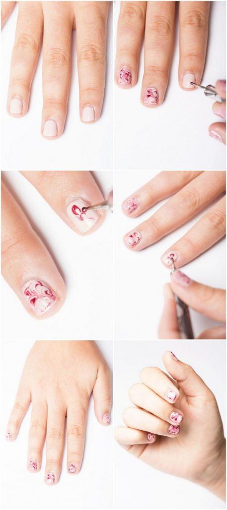 Игра лепестков может быть бесконечна: можно нарисовать их в художественном беспорядке или соединить в веточку с листьями, а можно даже нарисовать сердечко таким методом. Достаточно поставить нужное количество точек лаком (размер точек нужно выбирать в зависимости от вашей идеи) и провести соответствующие полосы или разводы иглой. Можно также ознакомиться с интересными идеями поэтапного дизайна ногтей с помощью иглы или зубочистки, а может, вы вдохновитесь сделать что-то свое.
