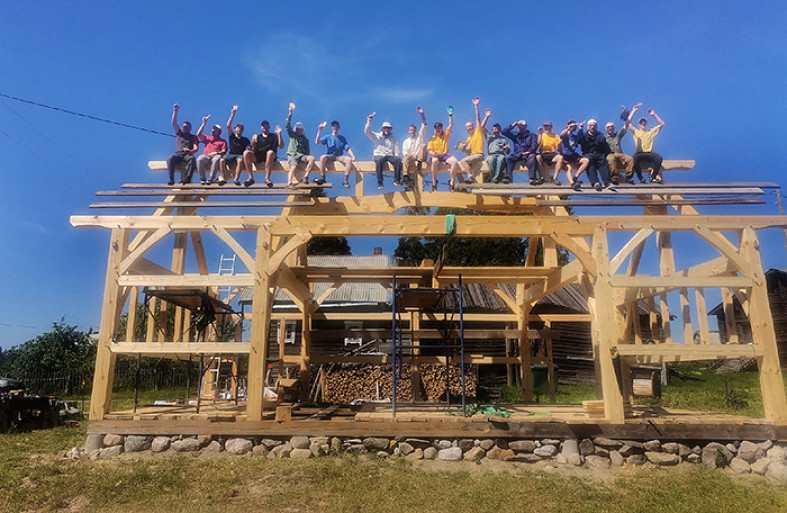 В рамках плотникого мастер-класса активисты возвели крытый павильон над сценой. На очередной мастер-класс плотницкого мастерства приехали его друзья и знакомые. На протяжении недели в карельской деревеньке раздавались звуки топора, пил и веселые голоса строителей. Как говорится, начало положено. Этим летом Павел планирует продолжить благоустройство концертной площадки.