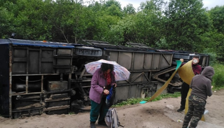 Ранее стало известно об одном ДТП с перевернувшимся автобусом, в котором находилось 40 человек. Четверым пострадавшим оказали медицинскую помощь. Проверку проводит Следком Карелии. // фото с VK-страницы Анны Чекконен