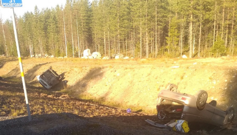 Авария произошла днем 23 октября неподалеку от Костомукши. Очевидец разместил снимки в группе «ДТП Петрозаводска и Карелии» ВКонтакте.