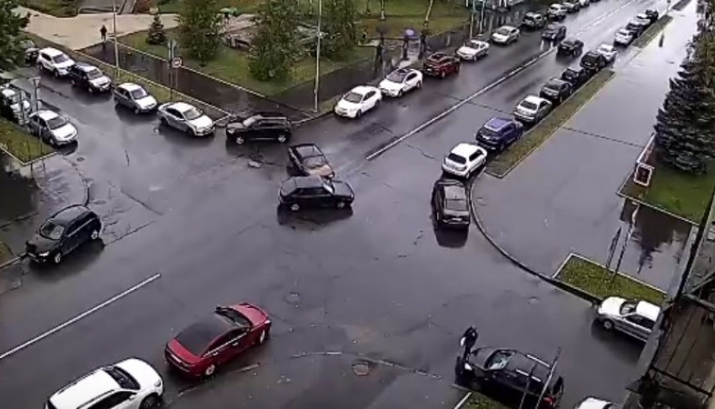 Момент столкновения в 09:39 запечатлела камера наблюдения CityLink, запись опубликовал паблик «Подслушано у водителей Птз и Карелии».