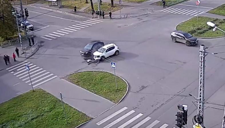 Момент столкновения на перекрестке улицы Московская и Октябрьского проспекта запечатлела камера CityLink. Видеозапись опубликовал паблик «Подслушано у водителей Птз и Карелии».