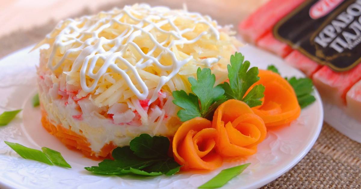 И снова делаем сетку из майонеза и делаем слой из крабовых палочек.