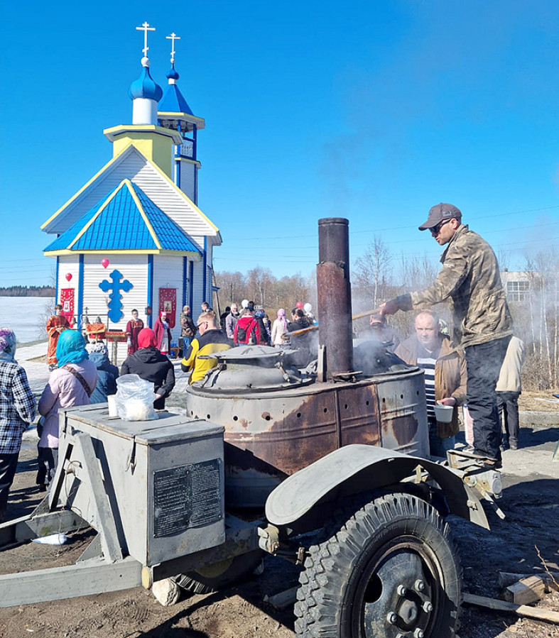 Под лучами весеннего солнца всех гостей угощали отменной кашей, горячим чаем и ароматными пирогами.