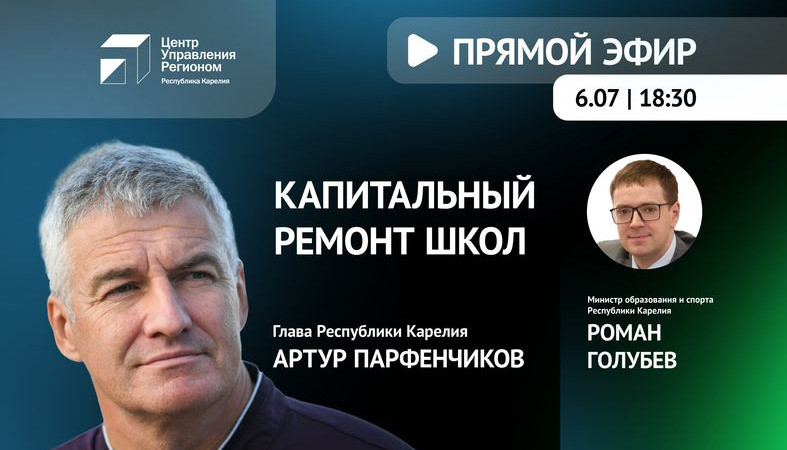 Глава республики Артур Парфенчиков и министр образования и спорта Карелии Роман Голубев проведут прямую линию и ответят на вопросы жителей в рамках проекта «ЦУР объясняет». Главная тема прямого эфира — капитальный ремонт карельских образовательных учреждений.