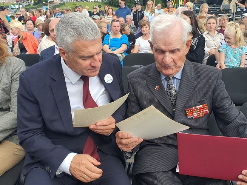 На главной сцене Дня республики по традиции чествовали новых Почетных граждан Карелии. В списке награждаемых — заслуженный строитель РФ, генеральный директор АО «Специализированный застройщик «Строительная компания «Век» Евгений Воскобойников, директор Онежского судостроительно-судоремонтного завода Владимир Майзус. Еще одного Почетного гражданина — ветерана Великой Отечественной войны Константина Панова — жители приветствовали стоя и дружными аплодисментами.