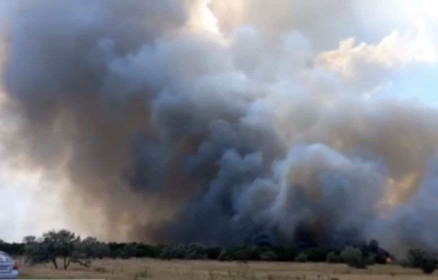 Сейчас перекрыт участок трассы "Таврида", транспорт объезжает опасный район через Феодосию. Отселение жителей сел, расположенных рядом с горящим полигоном в Крыму проводится ориентировочно на сутки.