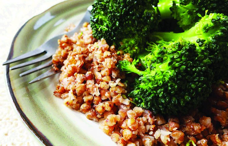 Разогрейте большую сковороду и добавьте немного оливкового масла. Добавьте мелко нарезанную курицу, посолите и поперчите. Обжарьте до золотистого цвета. Всыпьте гречку и перемешайте. Готовьте пару минут, периодически помешивая.