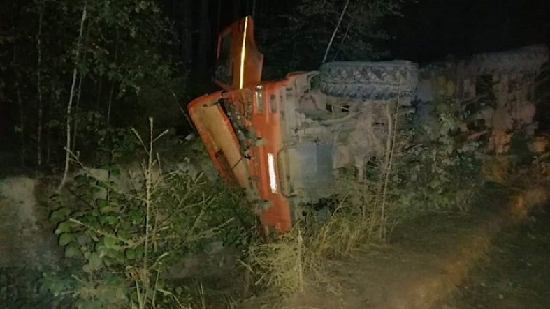 Шофер потерял правление на 9-м километре дороги Харпичиан — Албазино. Грузовик съехал в кювет и опрокинулся на бок.