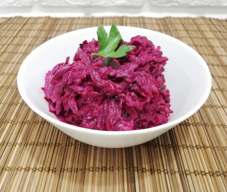 Солить не надо — соленый вкус там будет за счет майонеза. Лимон дает кислинку. Горчица — пикантную жгучесть в альтернативу чесноку. А оливковое масло позволяет сбалансировать вкус. Сахара в свекле природные, поэтому сладкий вкус там тоже присутствует. Вся палитра вкусов в общем!