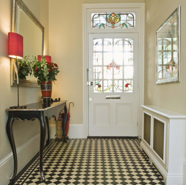 Немаловажным аспектом в решении, как оформить прихожую, является напольное покрытие. Очень практичным и стильным вариантом будет керамогранитная плитка, но можно также использовать любую другую напольную плитку (главное, чтобы она не была скользкой). Отличным решением станет паркет, ламинат, линолеум или ковролин. Единственным условием при выборе станет высокая износостойкость материала, которая гарантируется его прочностью.
