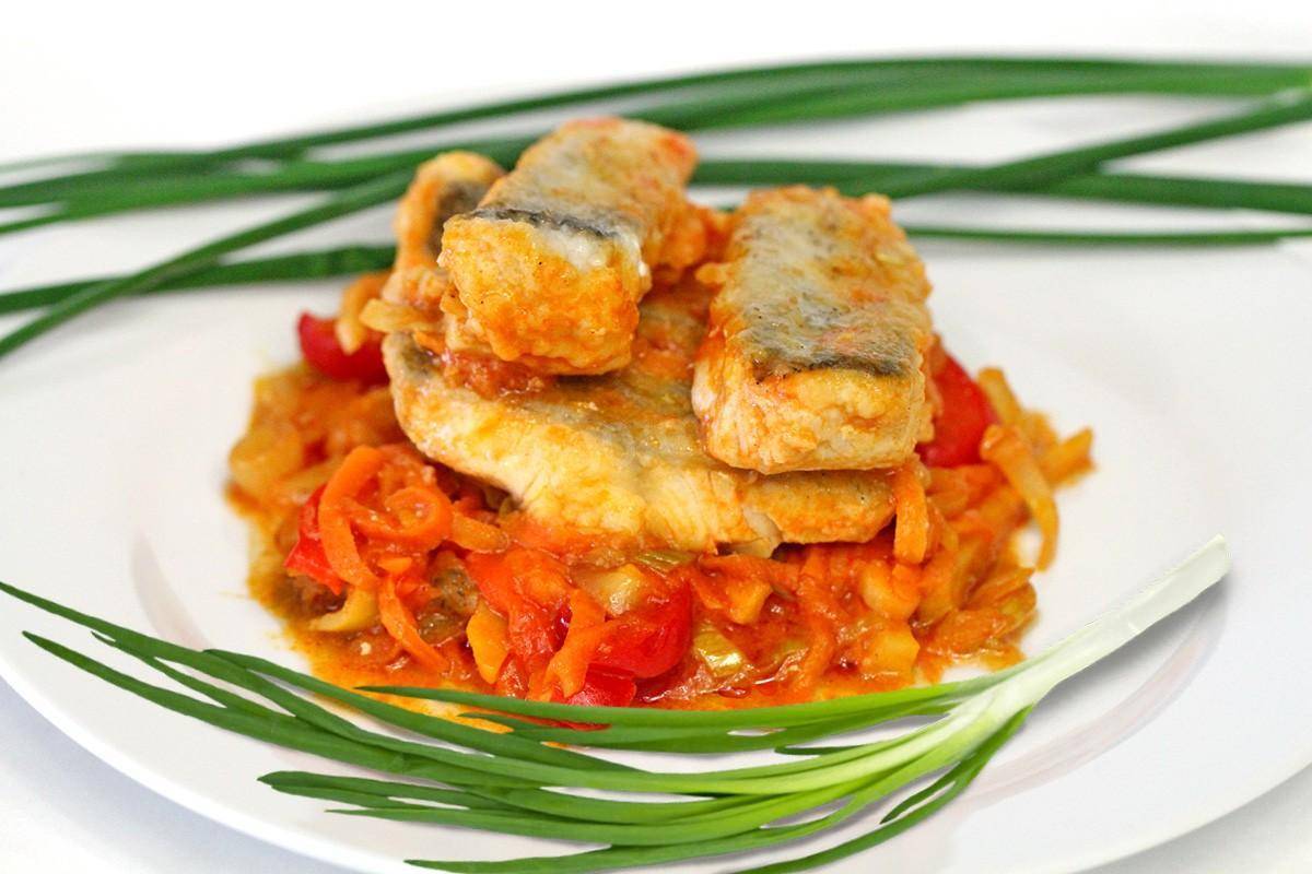 Вот такая рыбка получается. В сковороде остается довольно много густого соуса с морковкой и луком. Им можно полить любой гарнир или саму рыбу и просто вымакивать его кусочком хлеба. Это очень вкусно.