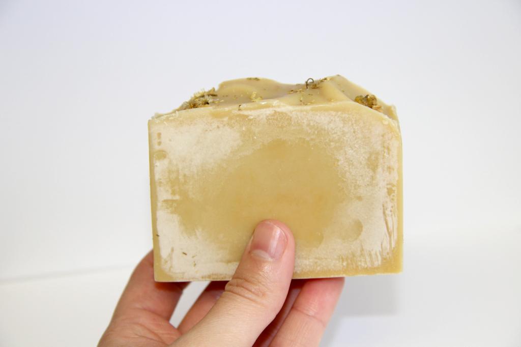 Иногда полученное мыло имеет тонкий слой белой пыли сверху. Следует промокнуть его перед использованием.