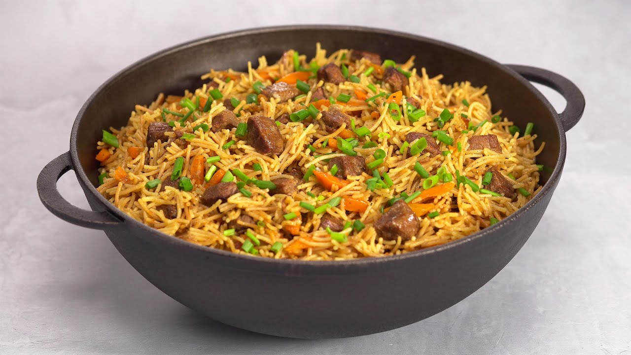 А вы пробовали ВЕРМИШЕЛЬ ПАЛАУ? Или знаете что это за блюдо? В общем, как-то раз мне пришла идея приготовить простой плов. Приготовила все ингредиенты и уже собралась готовить, но как будто внутренний голос сказал мне, что это не то что нужно. Да и семье наверное уже как-то приелся обычный плов. Зашла в интернет, полистала, поискала и увидела рецепт приготовления плова из вермишели, я кстати тогда еще не пробовала такой. Обычный плов, только вместо риса вермишель-паутинка, технология приготовления та же, что и у плова. Решила приготовить и знаете, получилось очень необычное блюдо, по своему вкусное, сытное и интересное. Вот хочу сегодня показать рецепт приготовления.