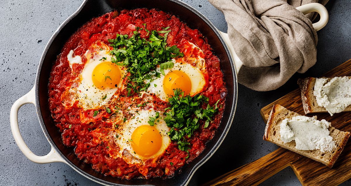 - Подавай шакшуку прямо в сковороде с кусочком подсушенного хлеба!