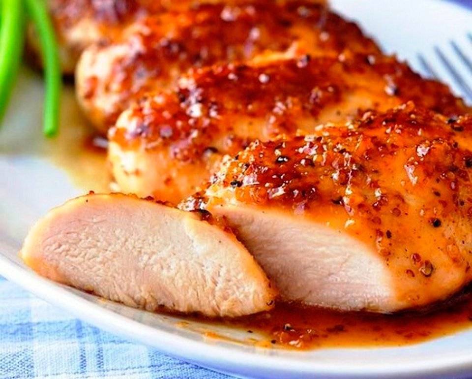 Куриное филе насыщается ароматами печёного чеснока, острого перца и трав, если их добавляли.