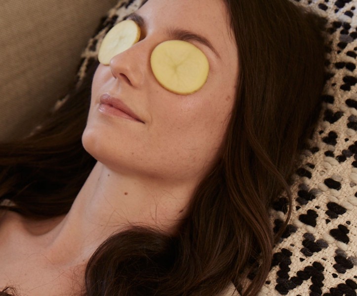 Чтобы избавиться от мешков под глазами, картофель натирают на терке. Эту массу наносят на кожу в проблемных зонах на 10-15 минут. Процедура хорошо справляется с темными кругами.