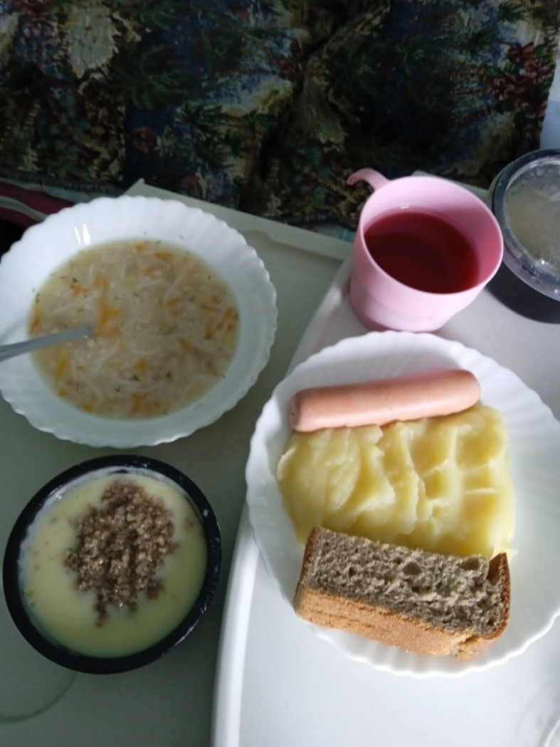 Эта фотография — продолжение обширной дискуссии по поводу питания малышей и их родителей в Детской больнице. Недавно было опубликовано фото, автор которого хотел сказать: вот как прекрасно здесь кормят.