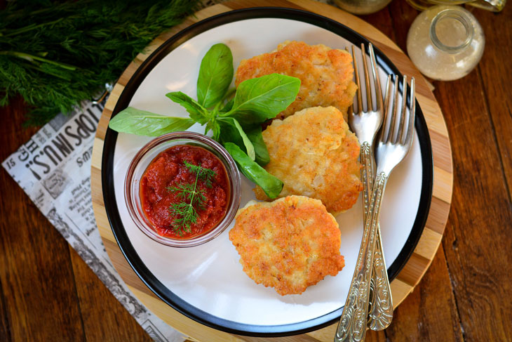 7. Разогреть небольшое количество масла на сковороде, ложкой выложить котлеты, придавая им округлую форму.