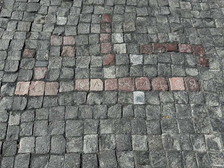 Владимир Любарский увидел загадочное послание на брусчатке. Фотографии экс-глава Петрозаводска опубликовал в своем аккаунте ВКонтакте.