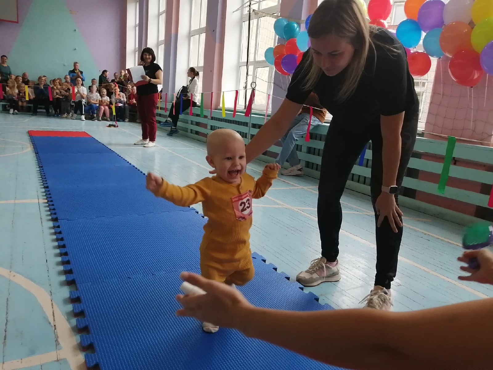 Самой юной участницей забега стала Губар Ева, которой недавно исполнилось 7 месяцев. Подбадриваемая возгласами и улыбками болельщиков, она задорно преодолела заданную дистанцию, заработав в результате первую в своей жизни настоящую медаль.