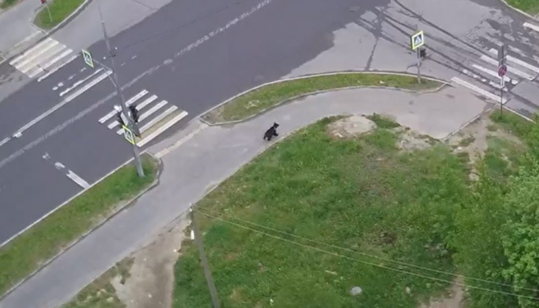 Утром 1 июня в Петрозаводске заметили медведя. Дикий зверь пришел в город и попал в объектив камеры наблюдения компании Sampo.ru.